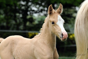 Nikita und Rainbow Golden Shannon = Palomino Stutfohlen Fohlen mit 76.5 % Araberblutanteil geb. 15.5.13