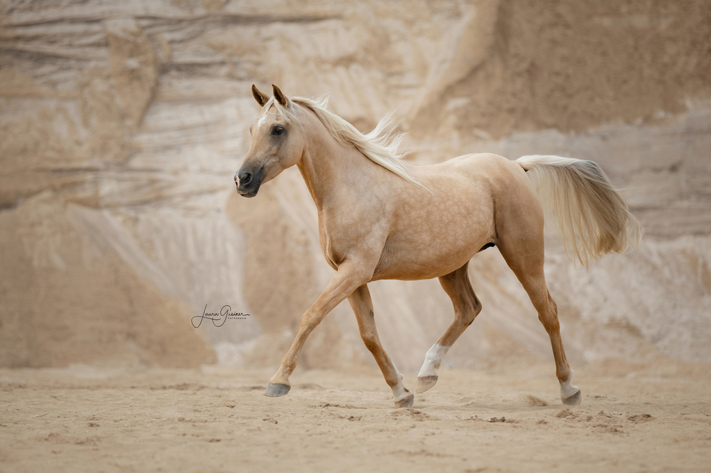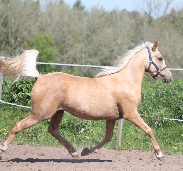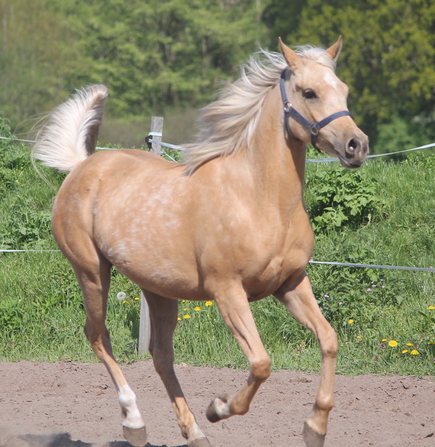 Shulay Faberge war einer der erfolgreichsten Schauchampions in England. Er ist Vater vieler gekörter Söhne und prämierter Töchter. Begründer der Palominoaraber Zucht. Auch Salifeh kann hier Herkunft nicht leugnen.
