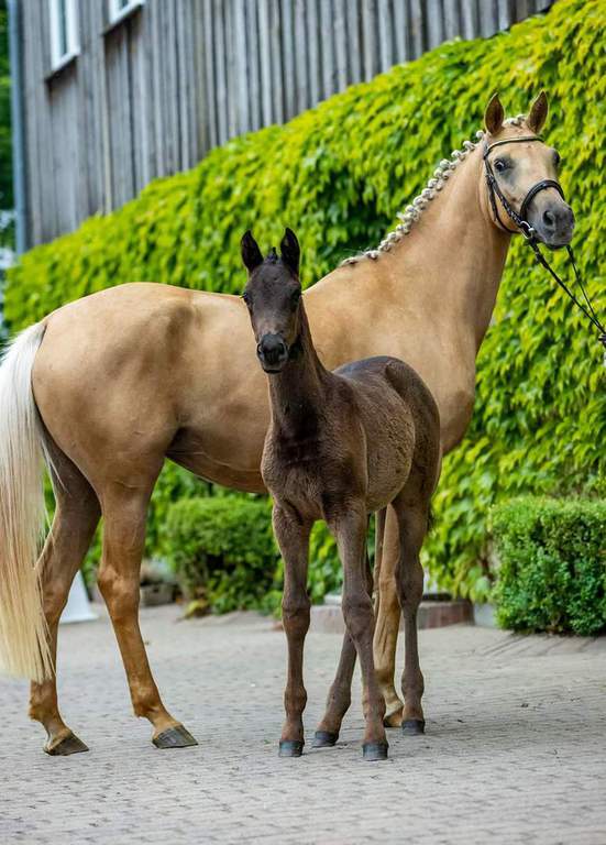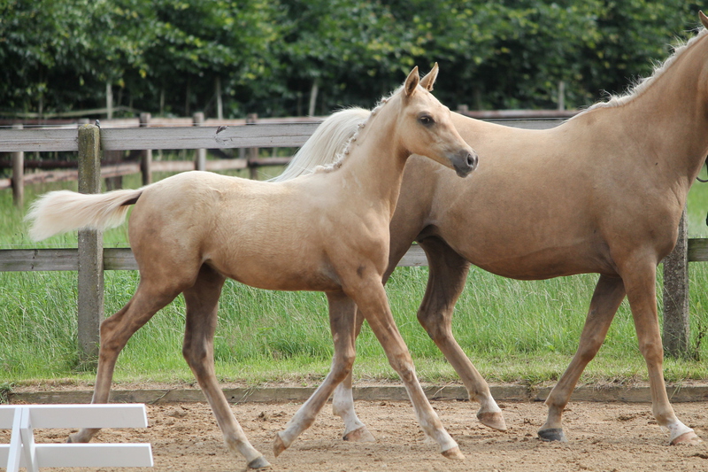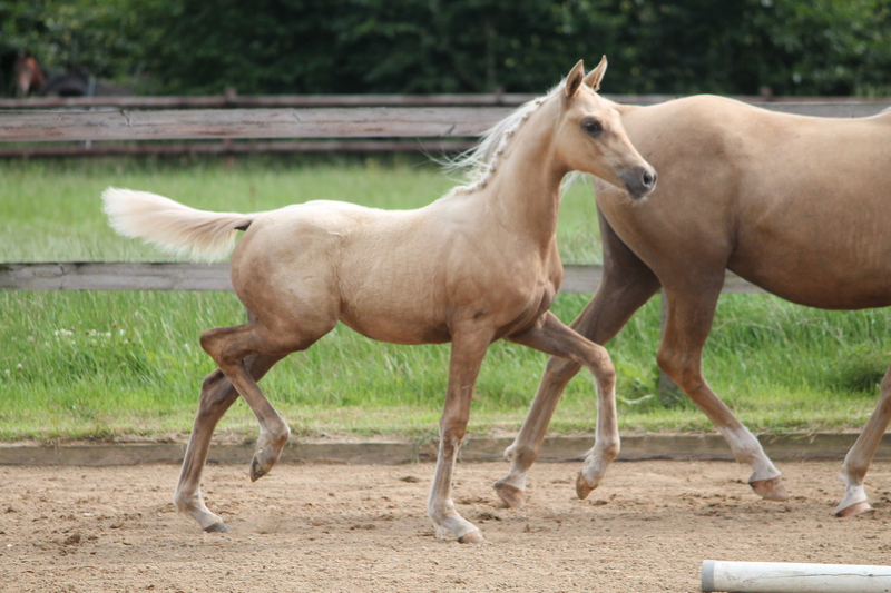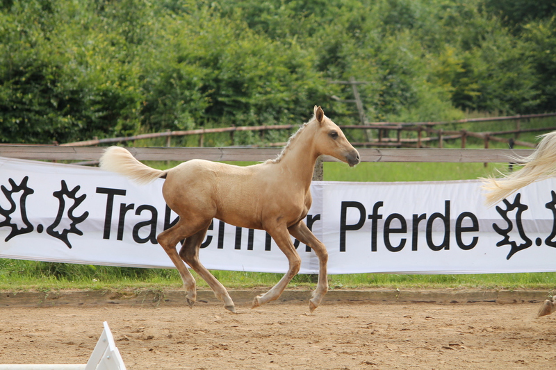 Sandfee ist eine der ganz wenigen Trakehner mit Cremegen. Und nicht nur das zeichnet sie aus. Hochbeinig, blütig, ausgestattet mit schwungvollen Bewegungen und den Adel ins Gesicht geschrieben, sucht dieses Fohlen ihresgleichen.